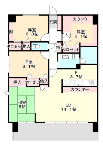 LDK 14.1帖 1室 / 和室 6.0帖 1室 / 洋室 6.1帖 2室 / 洋室 6.3帖 1室 / |