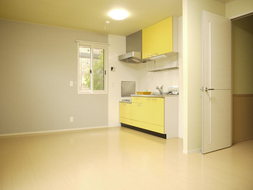 リビング12帖です 壁付のキッチンなので空間を広く使えて良いですよ(*^。^*) ※内観写真は同型別室のものです。現状優先となります。 ※インターネット:Bフレッツ |