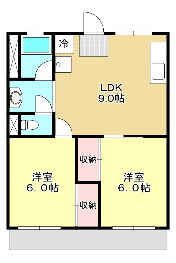 LDK 9.6帖 1室 / 洋室 6.0帖 2室 / |