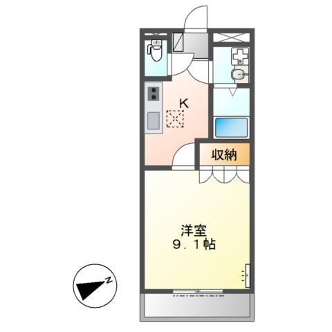洋室 9.1帖 1室 / |