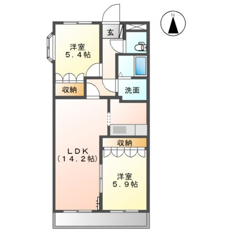 LDK 14.2帖 1室 / 洋室 5.9帖 1室 / 洋室 5.4帖 1室 / |